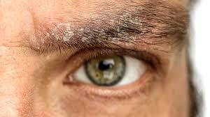 • قشور بيضاء تغطي فروة الرأس، أو الحاجبين، أو اللحية، أو الشارب.
